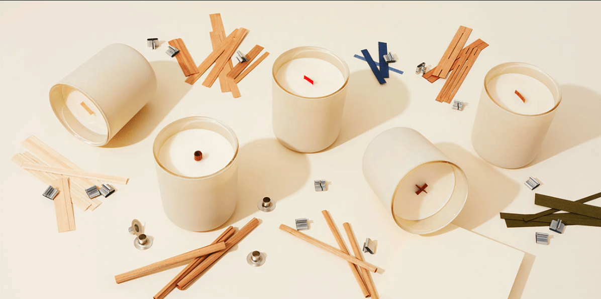 - Coconut-soy wax, wooden wicks, and all materials provided